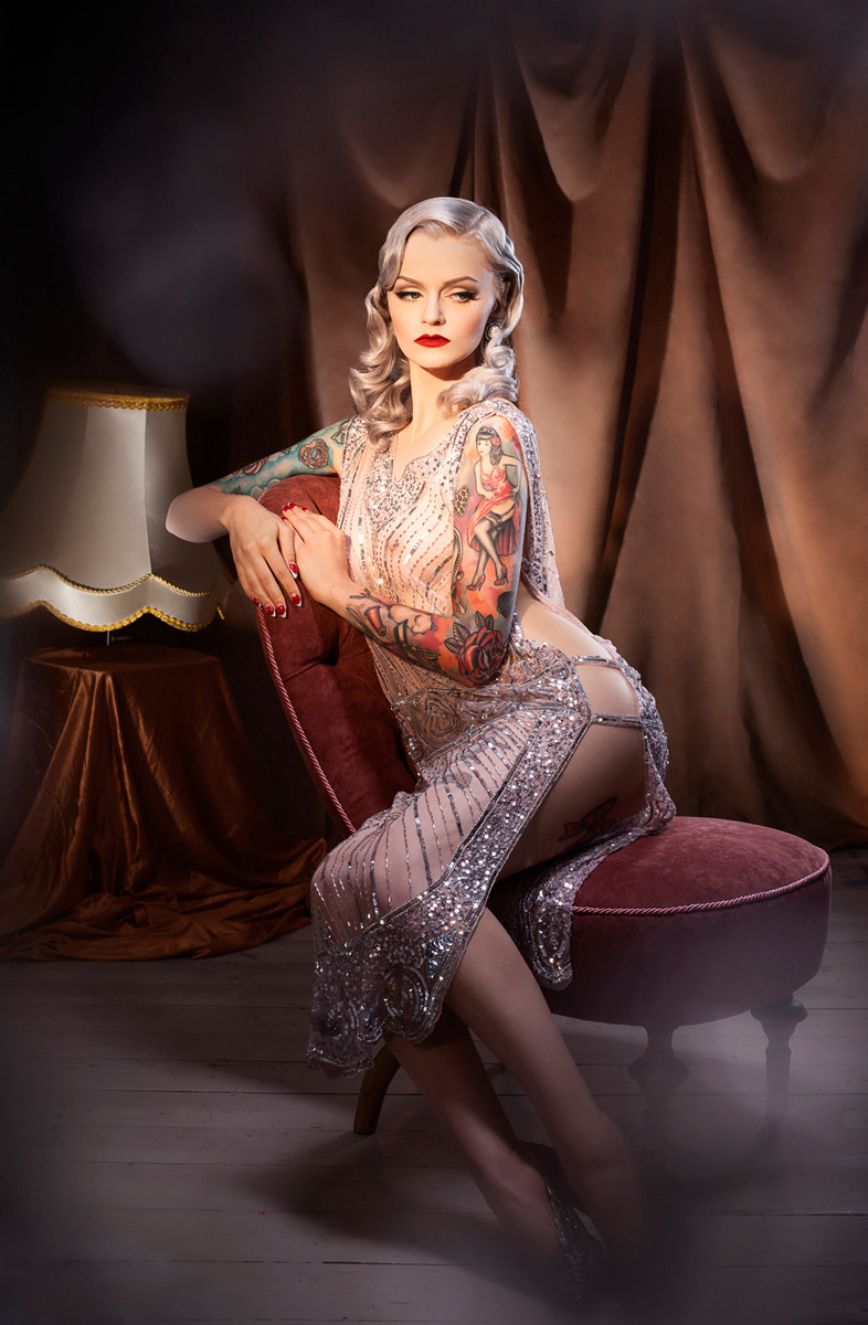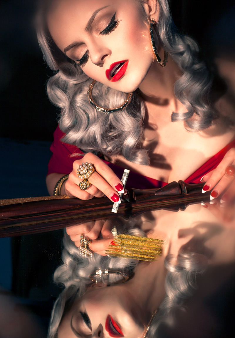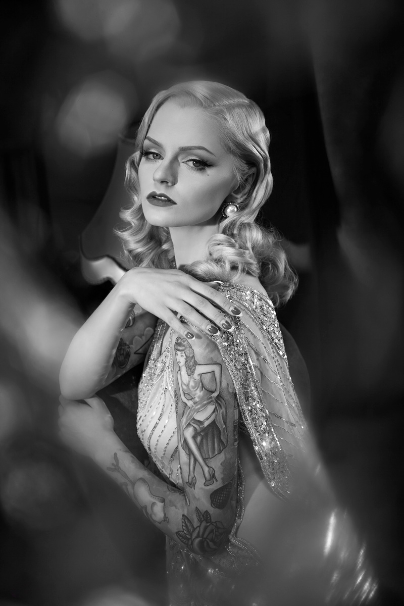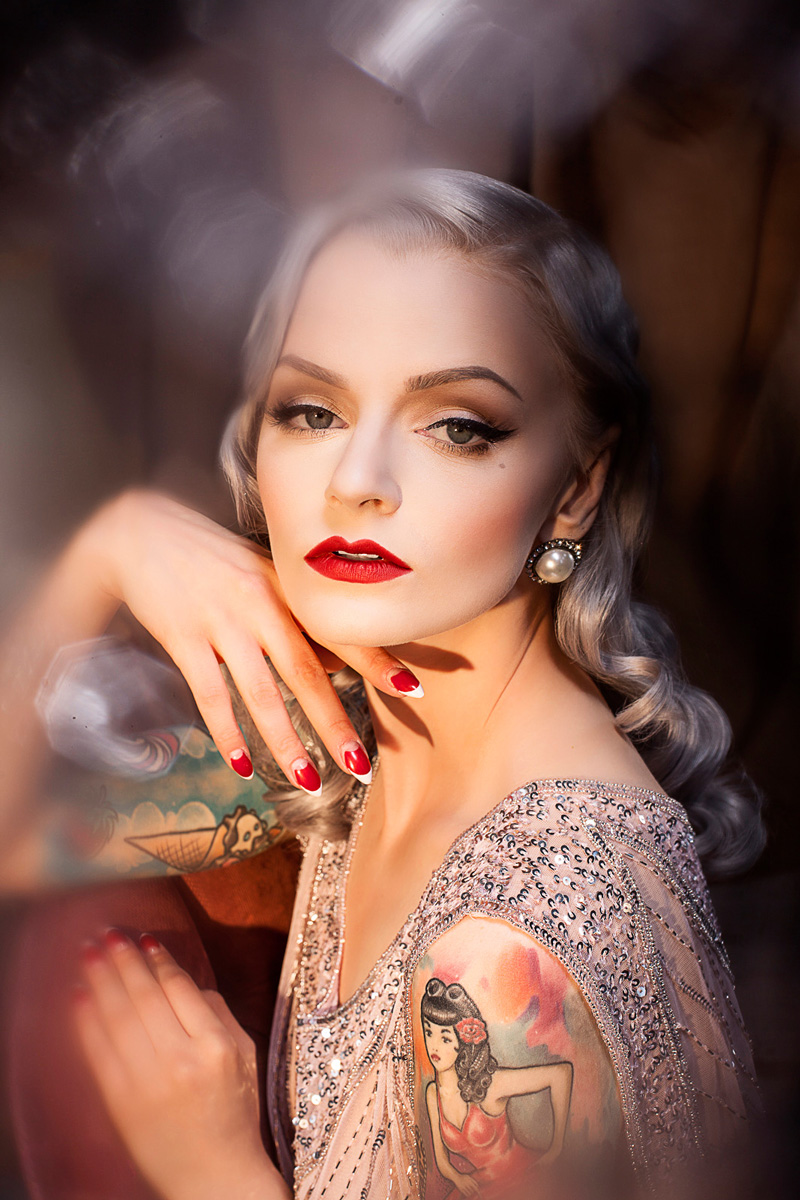 Jedyne i niepowtarzalne meble z charakterem od @Fanaberie Mariana czekały w studio kilka dni wcześniej, oraz wszelkie akcesoria zamówione ze “znanych portali aukcyjnych” 😛 Lampa z soczewką Fresnela wjechała w ostatniej chwili. Podczas sesji chciałyśmy połączyć kilka motywów – stylistykę lat 20/30 z próżnością gwiazd Hollywoodzkich salonów. Inspiracje zaczerpnięte z malarstwa Tamary Łempickiej oraz aktorek Lauren Bacall i Veronici Lake.